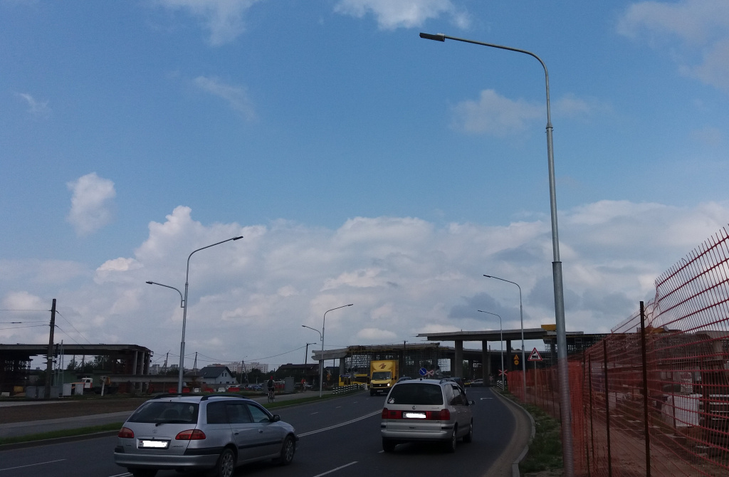 Строительное управление №158 ОАО "Стройтрест № 8" ответственно подходит к выбору освещения новой автомагистрали, ведь от этого зависит безопасность дорожного движения, и устанавливает светильники нашей компании - ОАО “Цветотрон”. Достигнуть хорошего качества освещенности, безопасного для окружающей среды, в десятки раз сэкономив электроэнергию, можно, используя только светодиодное освещение. Уже установлено порядка трех сотен светильников различной мощности - от 45 до 190 Вт.