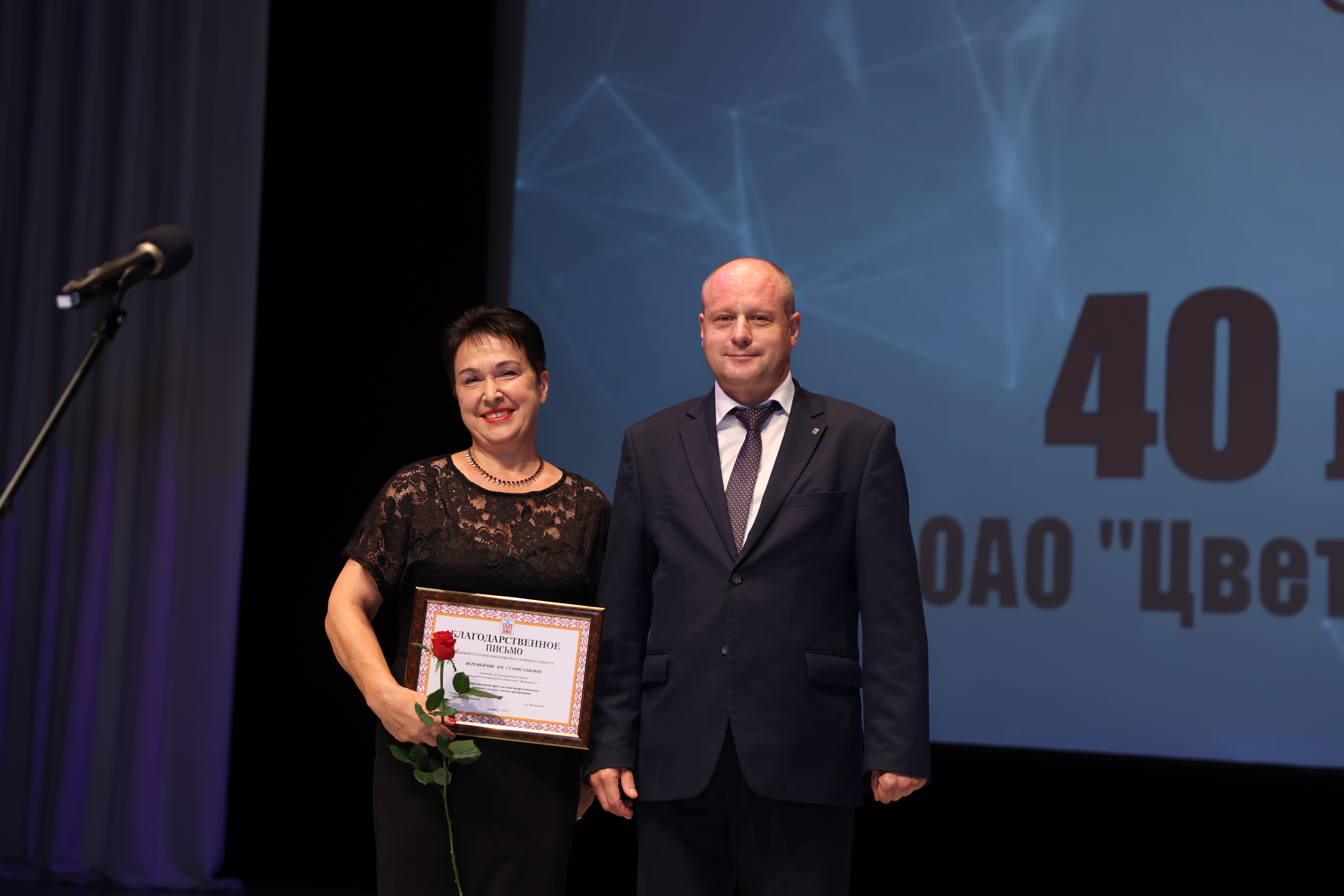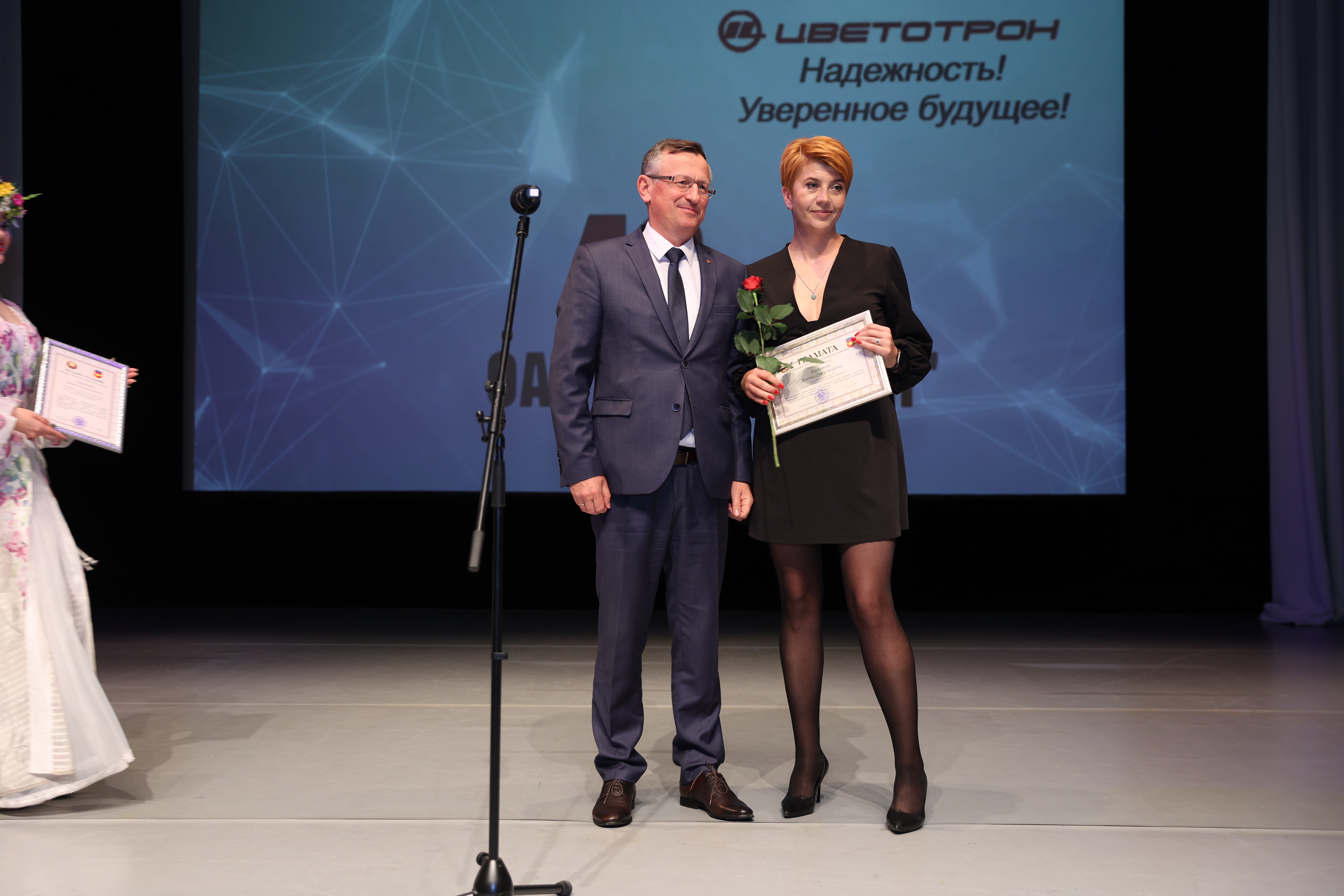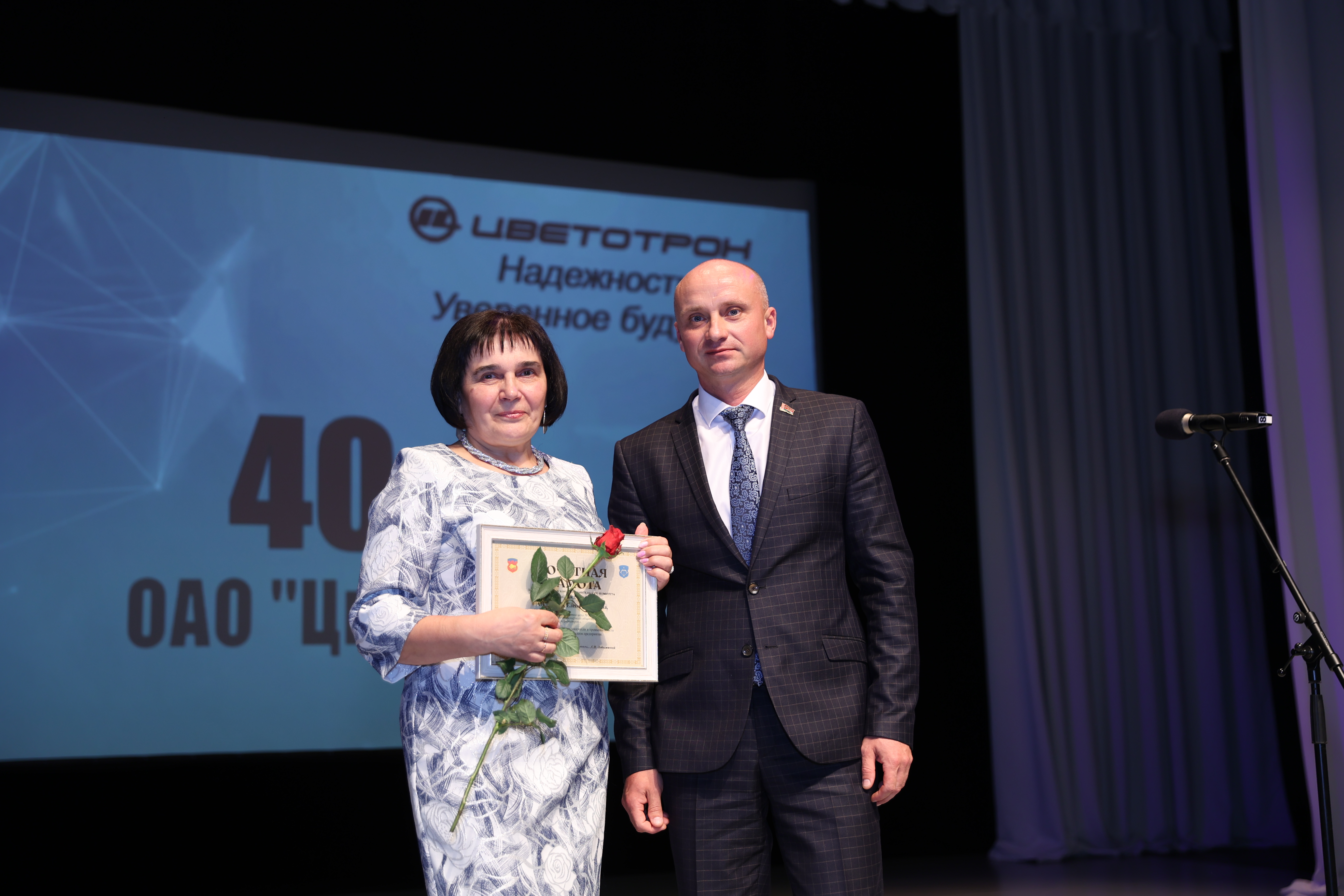 На празднике состоялось торжественное награждение работников ОАО "Цветотрон" Почетными грамотами и Благодарственными письмами.
