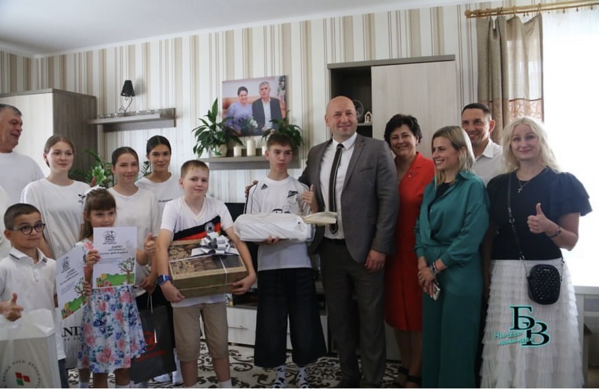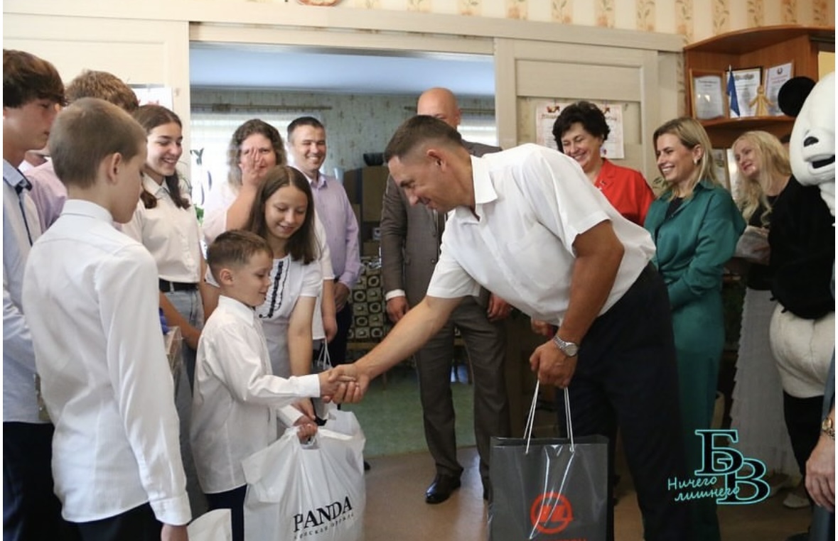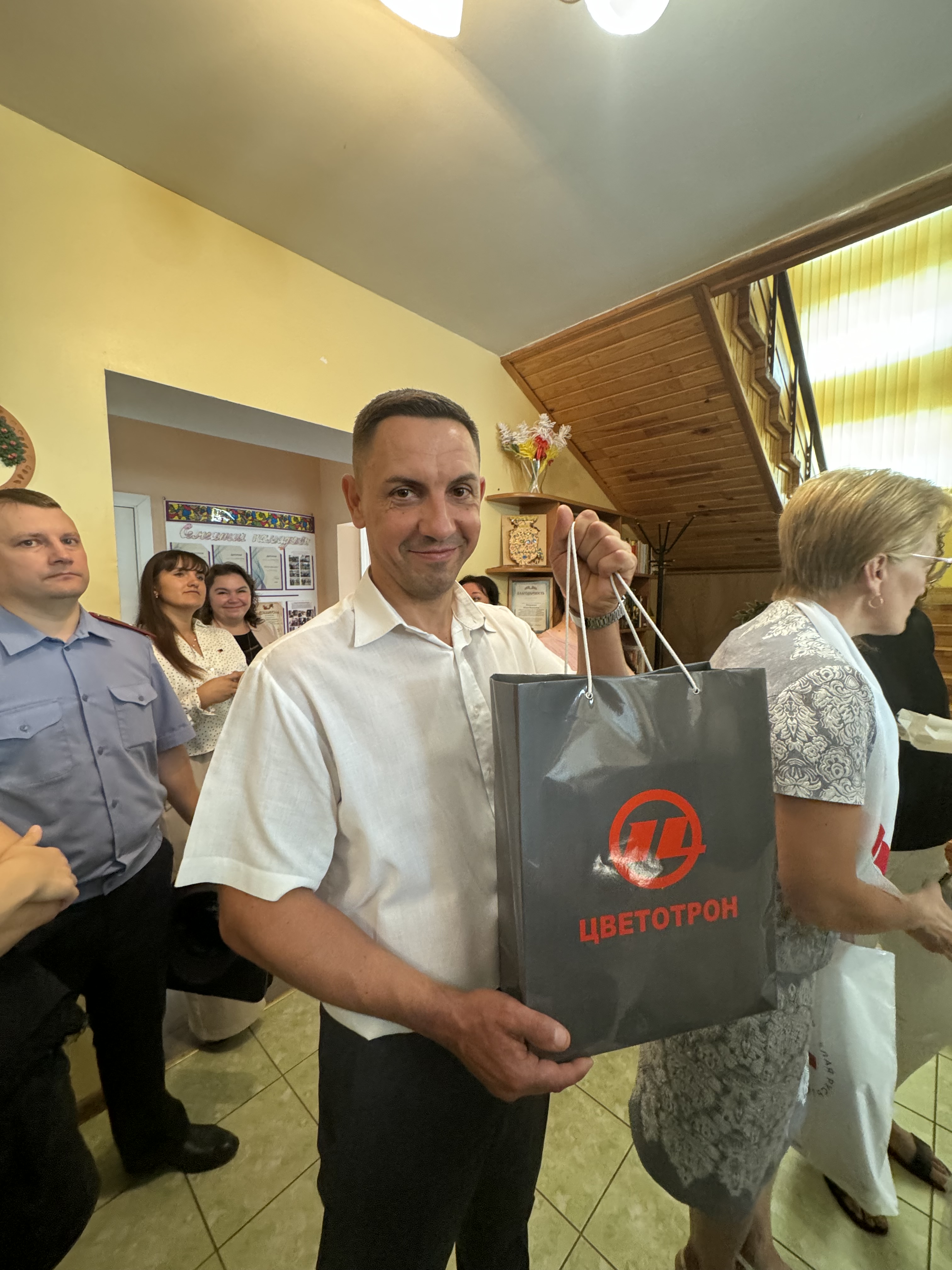 ОАО «Цветотрон» совместно с Администрацией Московского района во главе с Александром Николаевичем Прадуном и другими предприятиями города пришли поздравить ребят и пожелать им успехов в новом учебном году и вручили им подарки.