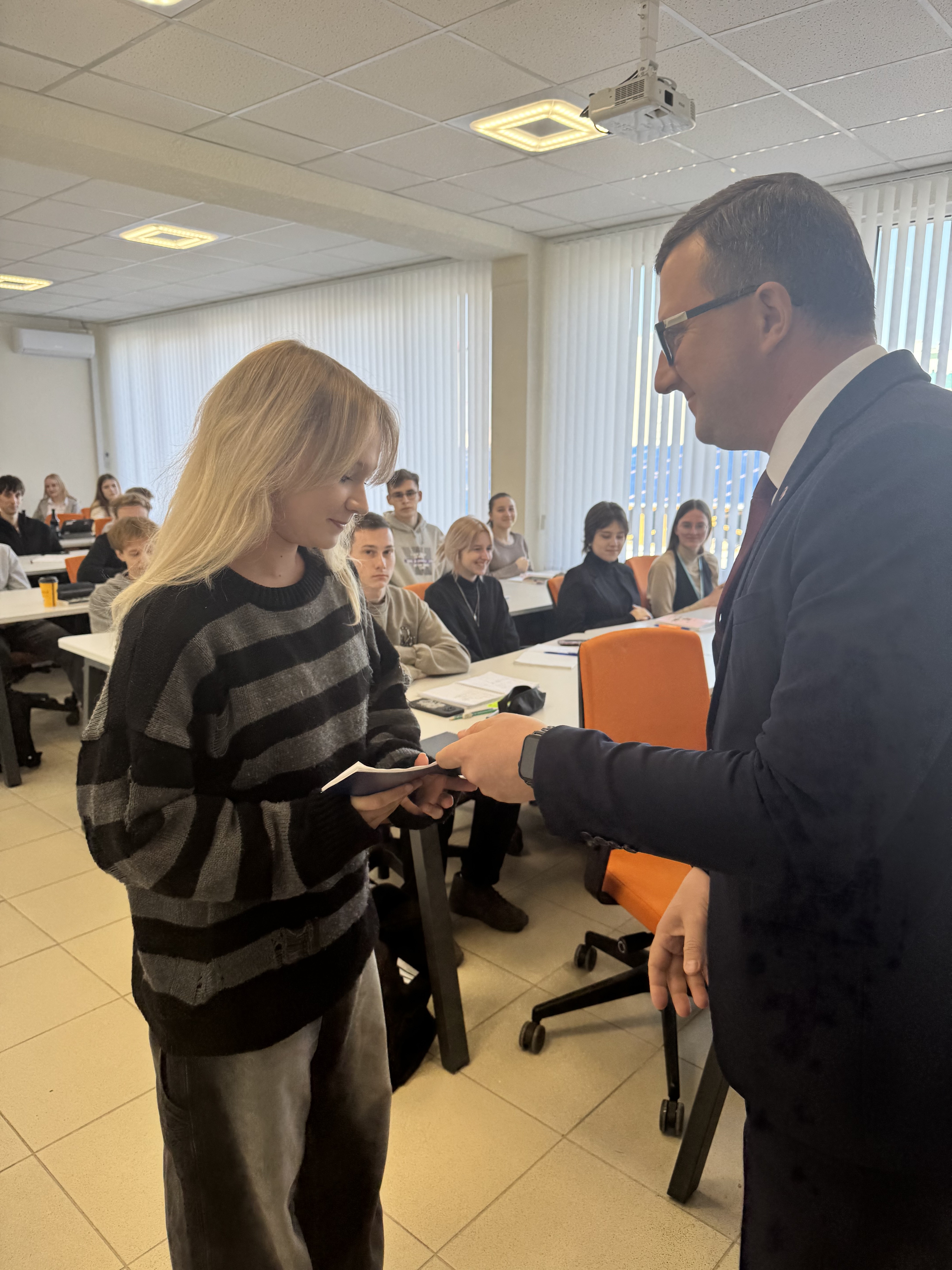 Вручение началось с приветственного слова заведующего кафедрой, которая отметила успехи студентов и подчеркнула важность полученных знаний для их будущей карьеры.